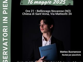 Una serata di grande musica classica attende Bellinzago Novarese: venerdì 16 maggio, alle ore 21.00, nella suggestiva cornice della Chiesa di Sant’Anna, si terrà il recital pianistico di Matteo Buonanoce, uno dei più promettenti giovani talenti del panorama concertistico.