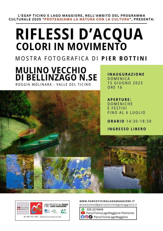 Sarà inaugurata domenica 15 giugno 2025, alle ore 16, presso il Mulino Vecchio di Bellinzago Novarese, nel cuore del Parco del Ticino, la mostra fotografica “Riflessi d’acqua. Colori in movimento” del fotografo Pier Bottini.