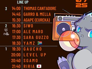 La musica sul palco del Godzilla Stage si accende dalle 19.30 con le sonorità di Gaucho, Level Up, Sgamo e dalle 21.40 di Riria, altra ospite internazionale di Karmageddon 2025. Nata a Tokyo, ora stabilmente residente a Londra, l’artista giapponese propone uno stile di matrice britannica, con sound Amapiano, Jersey Club e Dub. Con brani di epoche e scene diverse, i suoi set regalano energia e vibrazioni. Il suo set al Boiler Room Tokyo 2024 l'ha resa famosa a livello globale come DJ all'avanguardia.