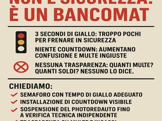 Noi non accettiamo che la sicurezza stradale venga usata come alibi per fare cassa. Non accettiamo un’Amministrazione che si rifiuta di rispondere ai propri cittadini. Non accettiamo un silenzio che sa di complicità.