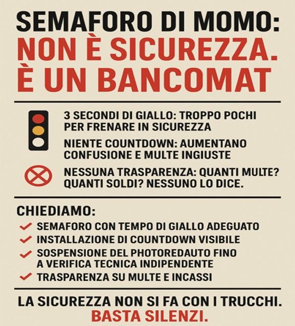 Basta multe a tradimento, Basta silenzio. Il Comune di Momo ha il dovere di rispondere.