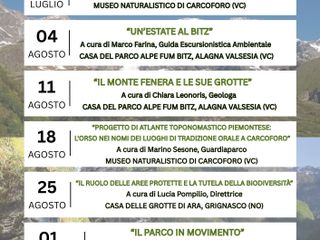 Un’estate all’insegna della scoperta e della conoscenza delle meraviglie naturali e culturali del territorio. L’Ente di gestione delle Aree protette della Valsesia propone sei appuntamenti gratuiti tra la fine di luglio e l’inizio di settembre, per raccontare al pubblico il lavoro quotidiano, spesso invisibile, che si svolge nei Parchi Naturali dell’Alta Valsesia e Alta Valstrona e del Monte Fenera.