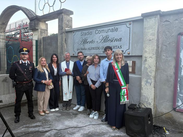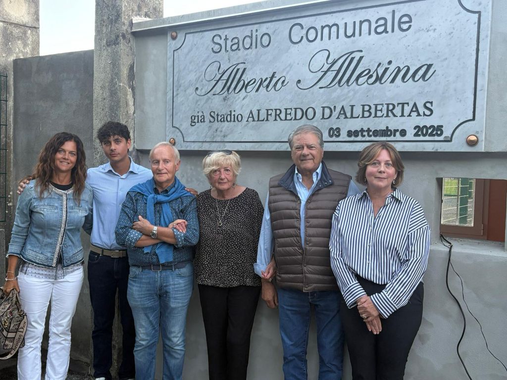Un atto dovuto. Per un uomo che con la sua passione per il Gozzano ha scritto pagine ineguagliabile della storia rossoblu. Da ieri lo stadio del comune cusiano ha una nuova denominazione: Stadio Alberto Allesina, già Alfredo D'Albertas. Centinaia di persone hanno partecipato a questo momento toccante e significativo: la sua famiglia, con la moglie Marilena, la figlia Gloria ed il nipote Albertino. I soci della Far, i dipendenti ed ovviamente giocatori, dirigenti e tifosi del Gozzano. “Credo che papà - le parole di Gloria Allesina - si sia meritato questo riconoscimento per quello che fatto per il Gozzano Calcio e per il suo paese. Un grazie a tutti per aver voluto questa intitolazione: come famiglia ne siamo orgogliosi e commossi”.