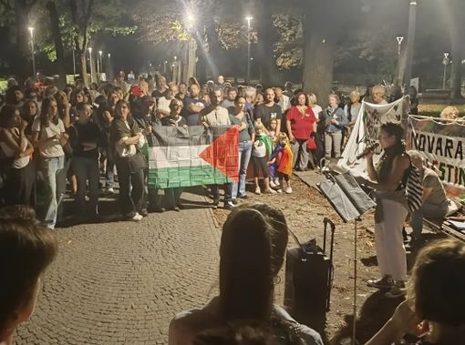 Tanta gente ieri sera al presidio organizzato nel parco dell’Allea, nei pressi della storica Fontana del Barlocchi, diventata per l’occasione simbolo del Mediterraneo in questi giorni attraversato dalle barche della Global Sumud Flottilia. E proprio il gesto di “mettere in mare” decine di barchette di carta con i colori della Palestina è stato il clou dell’iniziativa promossa dal Coordinamento Novara per la Palestina aderendo alla mobilitazione lanciata a livello nazionale. Un “happening” un po’ disordinato, ma molto accorato, con interventi che esprimevano lo sdegno per le azioni di Israele, il massacro di civili e bambini inermi, e ora l’occupazione militare della striscia di Gaza. Sono risuonate anche le parole degli appelli al governo italiano affinchè vengano interrotte le forniture di armi e i rapporti commerciali con il governo di Nethanyahu.
