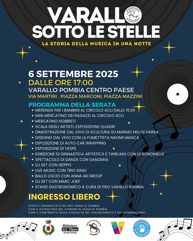 Cresce l’attesa per l’edizione 2025 di “Varallo Sotto le Stelle”, la manifestazione organizzata dalla Pro Varallo Pombia che sabato 6 settembre, a partire dalle ore 17, trasformerà il centro del paese in un grande palcoscenico all’aperto.