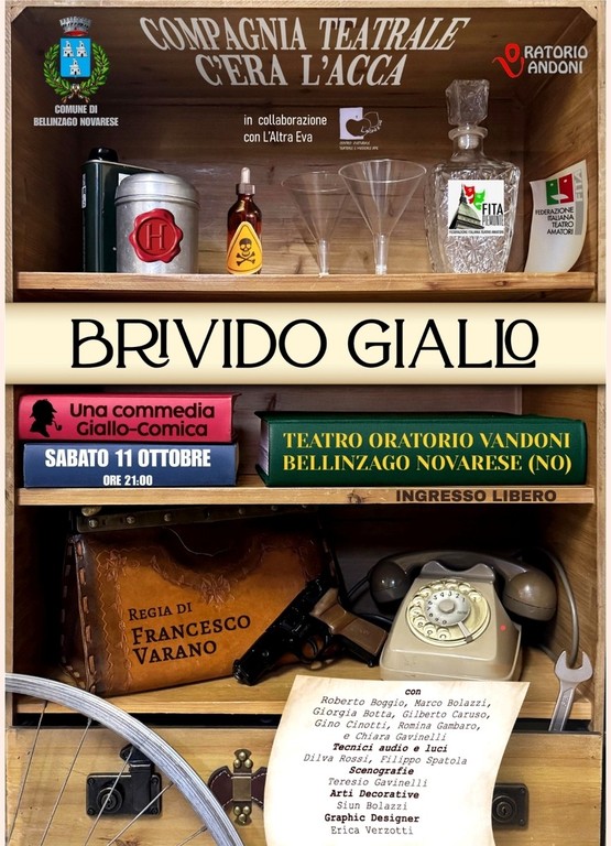 Sabato 11 ottobre, alle ore 21.00, il Gruppo Teatrale C’Era l’Acca presenta “Brivido Giallo” presso il Teatro dell’Oratorio Vandoni di Bellinzago.
