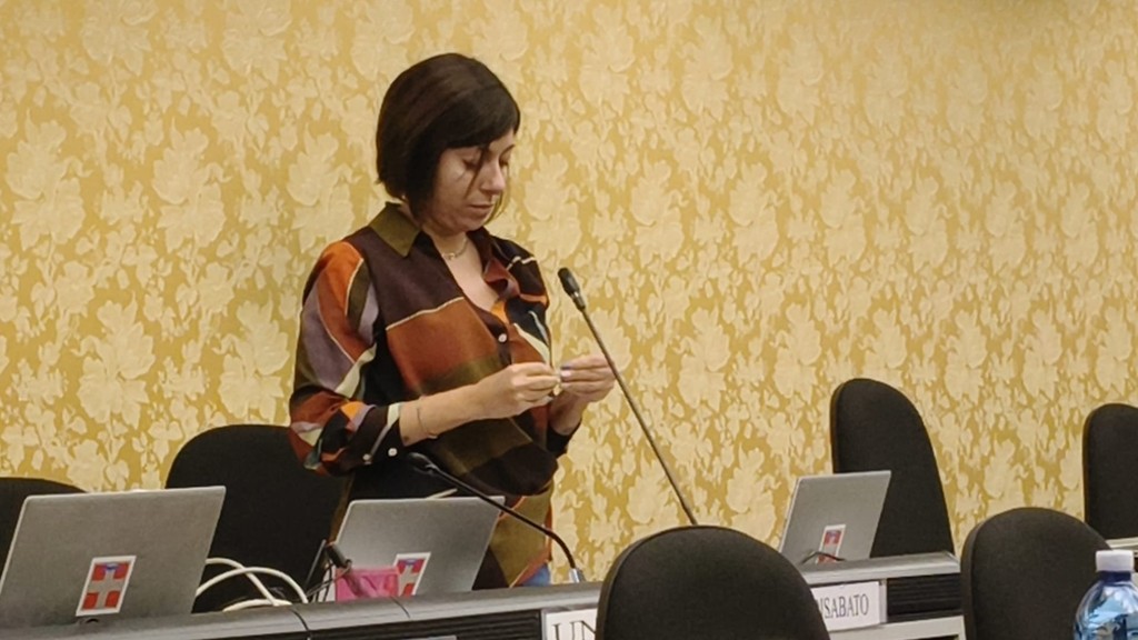 Protesta della capogruppo pentastellata, che insieme a Cera (AVS) ha portato in Consiglio le voci dei mille operatori