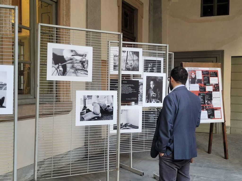 L’esposizione, allestita nel quadriportico di Palazzo Natta e visitabile fino al 7 novembre, raccoglie volti e storie di bambini, donne e uomini palestinesi, offrendo al pubblico uno sguardo autentico e umano sulla quotidianità di Gaza.