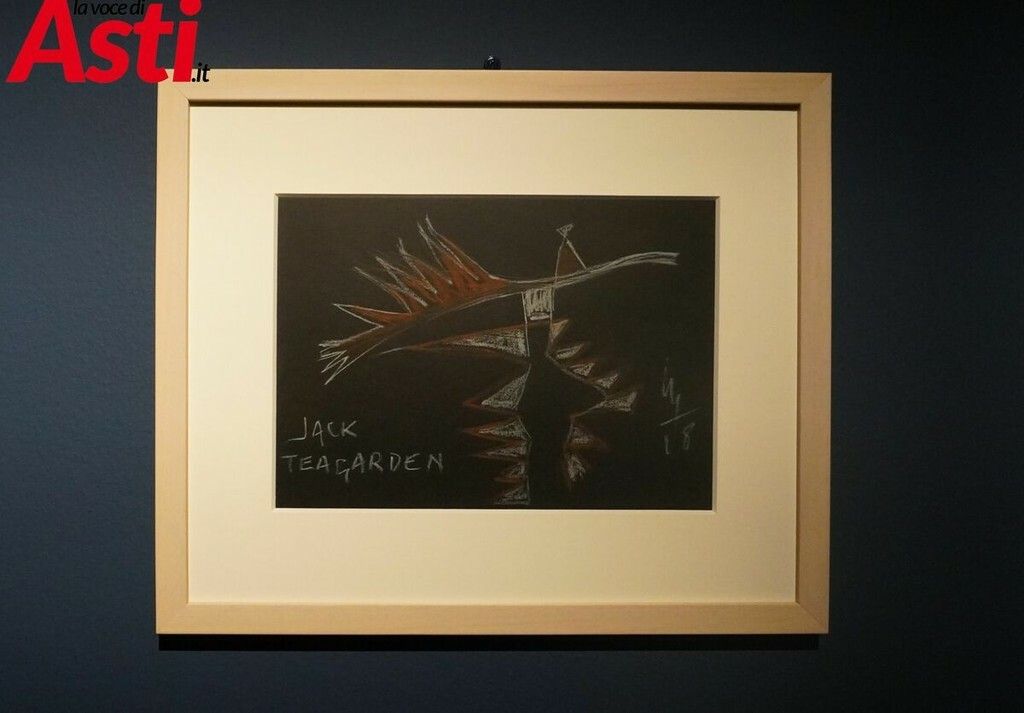 Il percorso espositivo, definito sotto la guida dello stesso Conte, spazia tra tecniche e soggetti diversi. Tra le opere più significative spicca Higginbotham del 1957, un omaggio a tempera e inchiostro a uno dei primi grandi trombonisti jazz.