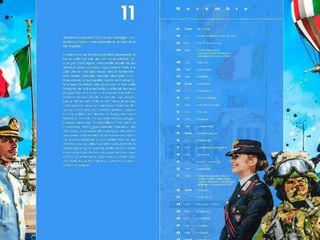 La prefazione, firmata da Aldo Cazzullo, offre uno sguardo storico e valoriale sull’arma, ricordando come i carabinieri, nati nel 1814, abbiano attraversato la storia d’Italia fino a oggi, protagonisti dei momenti fondativi della Nazione — dal Risorgimento alla Resistenza, fino alla modernità — rappresentando un simbolo di unità e sacrificio. Ed è a quei carabinieri, che hanno pagato con la propria vita, che rivolge un commosso pensiero e ringraziamento. La postfazione, affidata allo scrittore e giornalista Massimo Lugli, racconta un episodio vissuto in prima persona che diventa emblema della missione dei carabinieri: la prontezza, il coraggio e la naturalezza con cui, anche nei gesti più quotidiani, sanno donare sicurezza e conforto ai cittadini. La tavola del mese di novembre, attraverso la rappresentazione di un militare per ciascuna forza armata, è dedicata alla “difesa” e ai suoi valori. La scelta del mese coincide con la ricorrenza della “Giornata dell’unità nazionale e delle forze armate”, che celebriamo il 4 novembre, quest’anno suggellata dalla cerimonia nella città di Ancona.