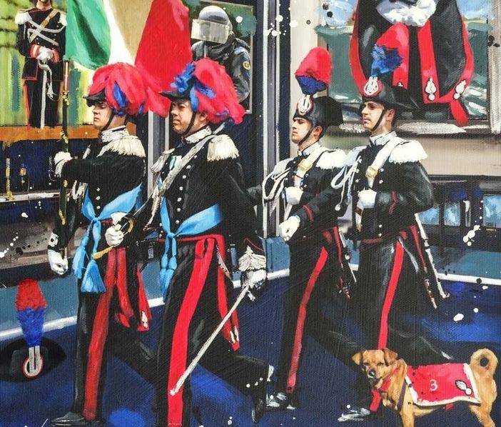 Le tavole, realizzate dall’artista René (Luigi Valeno), maestro della nuova pop art italiana, rappresentano con uno stile vivace e luminoso i carabinieri protagonisti della vita quotidiana del Paese. Ogni immagine mostra uomini e donne dell’arma nel pieno del loro servizio — tra la gente, nei centri urbani, nei paesaggi naturali e nei luoghi simbolo della cultura italiana — restituendo un’idea di presenza costante, dedizione e vicinanza al Paese. Le opere di René trasformano così il linguaggio della pop art in un omaggio alla quotidianità dei Carabinieri, celebrandone l’impegno, la professionalità e lo spirito di umanità che da sempre ne contraddistinguono la missione. I testi che accompagnano le diciannove tavole, affidati ancora una volta alla penna di Maurizio De Giovanni, costituiscono un racconto unitario, sviluppato attraverso la lettera di un giovane carabiniere, appena arruolato, che racconta ai suoi genitori le ragioni della sua scelta e l’esempio che ne trae. In essa il militare, con voce sincera e partecipe, narra episodi di generosità, slancio e altruismo che riassumono le difficoltà e le soddisfazioni di una scelta di vita fondata sul servizio al prossimo ed alla Nazione e le responsabilità di questa missione. Le parole del giovane, intrise di entusiasmo e di rispetto per la divisa, si intrecciano con episodi di altruismo e coraggio tratti dalla quotidianità, restituendo un mosaico di umanità e dedizione. Ogni tavola è così associata a un momento di crescita personale e professionale: un salvataggio, un gesto di solidarietà, una presenza discreta accanto a chi soffre, un’azione che riafferma la missione dei carabinieri come presidio di legalità e vicinanza alla popolazione. I testi diventano un viaggio nel cuore dell’Istituzione, un percorso che racconta non solo il mestiere del carabiniere ma anche la dimensione umana di chi lo interpreta. Il filo conduttore è la cura, intesa come dedizione quotidiana e silenziosa verso il prossimo. Le storie del giovane carabiniere si trasformano così in un dialogo affettuoso e morale con i suoi genitori, ma anche in un messaggio universale ai cittadini, un invito a credere nella bontà, nel coraggio e nella forza discreta di chi serve lo Stato con passione e onore. In ciascuna tavola, la parola si unisce all’immagine per esaltare il senso profondo della divisa: essere accanto a chi ha bisogno, in ogni circostanza, come autentici “eroi quotidiani”.