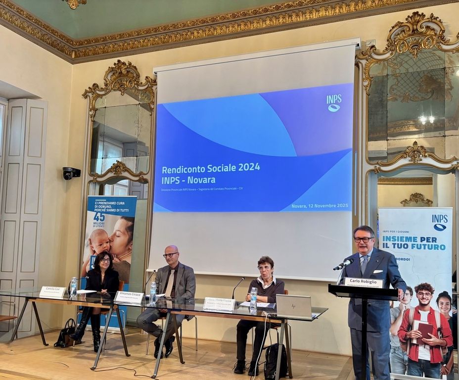 I saluti istituzionali dell’Inps e la presentazione del Rendiconto Sociale 2024 sono stati affidati a Vincenzo Ciriaco, direttore regionale Inps Piemonte; Anna Maria Fratta, presidente del Comitato provinciale Inps Novara; Raffaele Arezzi, presidente del Comitato regionale Inps Piemonte; Camilla Cosi, direttore provinciale Inps Novara; e Fabrizio Ridolfo, responsabile agenzia prestazioni e responsabile ad interim del controllo di gestione Inps Novara.