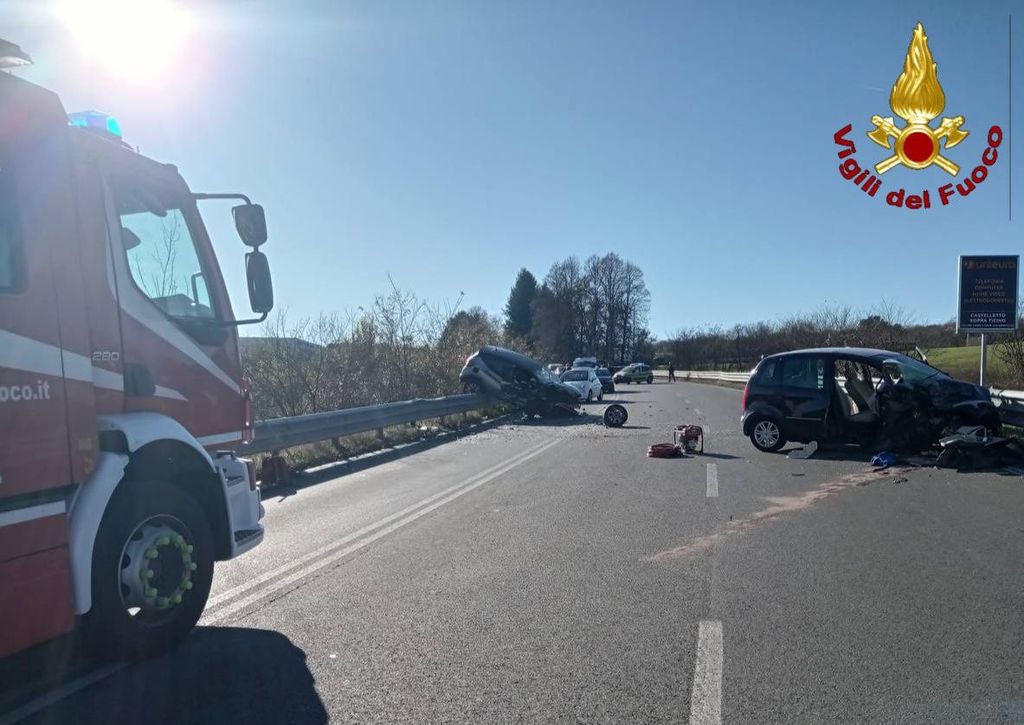 Intorno alle 12.20 di oggi, sabato 22 novembre, la squadra dei vigili del fuoco del distaccamento di Arona è intervenuta a Paruzzaro, in via Borgomanero, per un incidente frontale tra due autovetture. Ingenti danni ai mezzi e i due conducenti trasportati dal 118 all’ospedale di Borgomanero. Sul posto anche i carabinieri per chiusura temporanea della strada per rilievi e rimozione mezzi e il personale Anas per il ripristino post incidente.