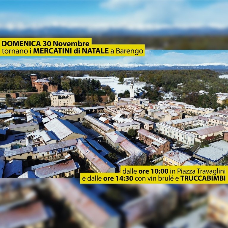A Barengo torna la magia dei Mercatini di Natale, quest’anno completamente al coperto sotto il grande tendone allestito in Piazza Travaglini. L’appuntamento è per domenica 30 novembre, a partire dalle 10 del mattino e per tutto il pomeriggio, con bancarelle, artigianato, idee regalo e atmosfera natalizia.