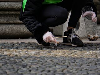 La parola fatica non è esagerata. Per questo genere di raccolta è infatti fondamentale l’intervento manuale: occorrono pinze e stecchi per rimuovere le cicche bloccate tra un cubetto di porfido e l’altro, e lungo i bordi delle lastre di granito dei portici. Un tipo di pulizia “di fino” della pavimentazione del centro che non è realizzabile né con le scope né con le macchine idropulitrici.