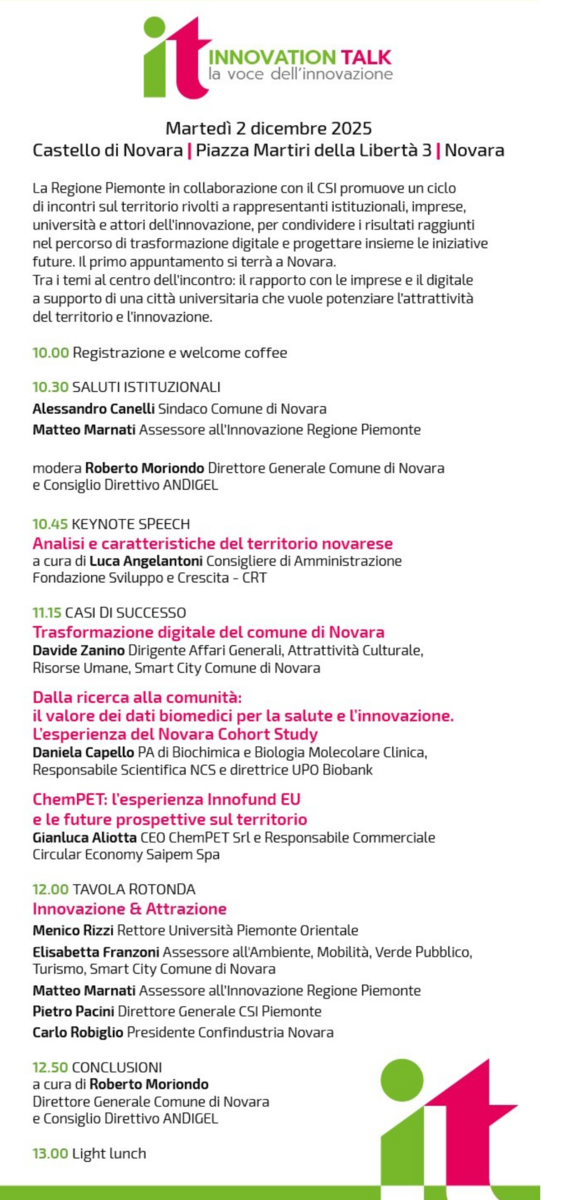 La prima tappa del tour regionale si terrà a Novara, città che negli ultimi anni ha rafforzato il proprio ruolo come polo universitario e centro di innovazione in espansione.