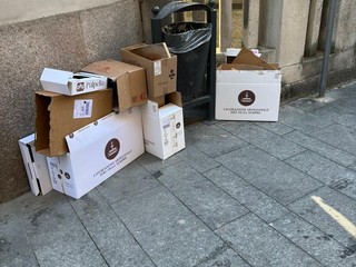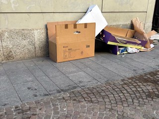 Il capogruppo del Movimento 5 Stelle Mario Iacopino denuncia la situazione di accumulo di carta e cartoni nelle vie del cuore della città, fenomeno legato alla gestione del servizio affidato da Assa S.p.A. – società partecipata dal Comune – a un soggetto esterno.