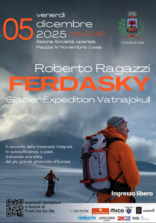 Una serata dedicata all’avventura, al coraggio e alla forza della solidarietà. È quella in programma venerdì 5 dicembre a Lesa, dove il Comune ospiterà, nel Salone della Società Operaia, Roberto Ragazzi, Team Leader della Ferdasky Glacier Expedition, protagonista di una delle traversate più estreme mai compiute sul Vatnajökull, il ghiacciaio più grande d’Europa.