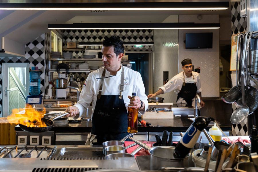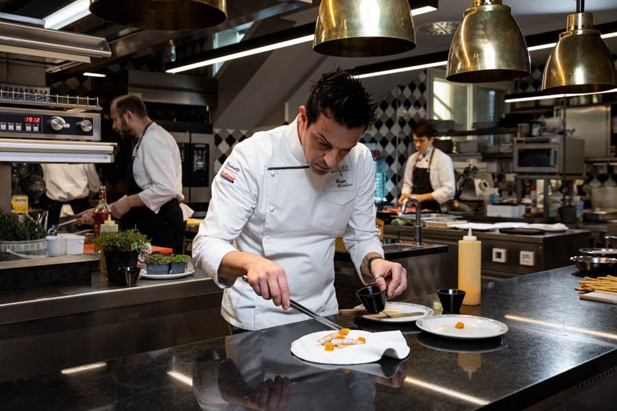 L’Atelier, invece, è una vera esperienza da vivere senza fretta. Con i suoi 28 coperti, è aperto solo la sera e la domenica a pranzo. Qui il tempo sembra rallentare: si comincia con il benvenuto e un calice di champagne, poi una sequenza di rituali, passaggi e attenzioni che ricordano le grandi tavole francesi. L’ospite viene accompagnato con discrezione, senza invadenza, per sentirsi sempre a proprio agio. “Chi viene da noi deve portare a casa un ricordo: di un piatto, di un vino, dell’accoglienza ricevuta - racconta lo chef - All’Atelier il tempo si ferma, ed è questo il vero lusso”.