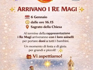 Al termine della rappresentazione, i Re Magi arriveranno con i loro asinelli per portare doni a tutti i bambini, regalando un pomeriggio ricco di emozioni e atmosfera natalizia.