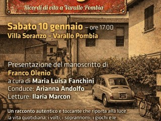 Un viaggio nella memoria, tra prati, botteghe, famiglie contadine, giochi nei boschi e solidarietà di vicinato. È questo lo spirito di “La mia Selvigia”, il manoscritto di Franco Olenio, redatto da Maria Luisa Fanchini, che verrà presentato sabato 10 gennaio alle ore 17 presso la veranda di Villa Soranzo a Varallo Pombia.