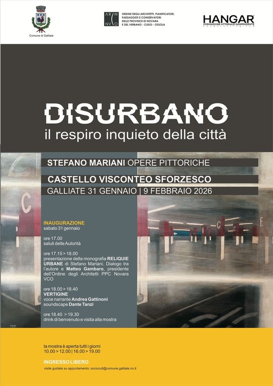 Nel corso della serata sarà presentata anche la monografia “Reliquie Urbane” di Stefano Mariani, in dialogo con Matteo Gambaro, presidente dell’Ordine degli Architetti delle province di Novara e Verbano Cusio Ossola, offrendo un approfondimento sul rapporto tra arte, architettura e trasformazione dello spazio urbano.