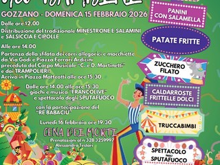 Si comincia a pranzo, dalle ore 12 in Piazza Matteotti, con la distribuzione del tradizionale minestrone accompagnato da salamini, salsiccia e cipolle, un piatto simbolo della festa. Nel pomeriggio, alle 14.00, prenderà il via la grande sfilata dei carri allegorici e delle maschere, che percorreranno Via Godi e Piazza Ferrari Ardicini, accompagnati dal Corpo Musicale “C. e D. Martinetti” e dagli spettacolari trampolieri. L’arrivo è previsto per le 15.30 in Piazza Matteotti.
