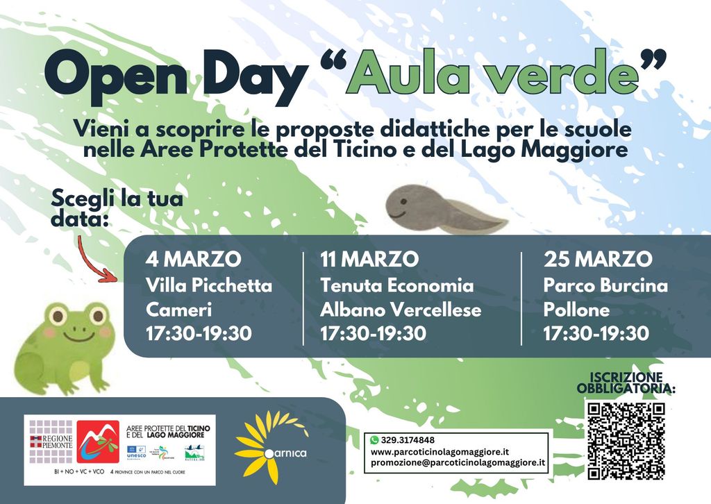 Sarà Cameri a ospitare uno dei tre open day dedicati all’“Aula Verde”, l’iniziativa rivolta a scuole e insegnanti per conoscere da vicino le proposte di educazione ambientale nelle aree protette del territorio. L’appuntamento è fissato per mercoledì 4 marzo 2026 nella sede di Villa Picchetta, punto di riferimento del Parco del Ticino nel Novarese.