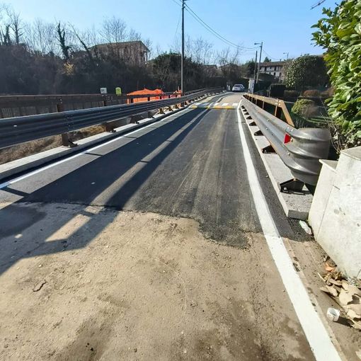La larghezza della carreggiata non ha subito variazioni rispetto alla situazione precedente. L’installazione delle nuove barriere di sicurezza, conformi alle normative vigenti, può generare un effetto ottico che fa percepire la sede stradale come più stretta, ma le dimensioni effettive sono rimaste inalterate.