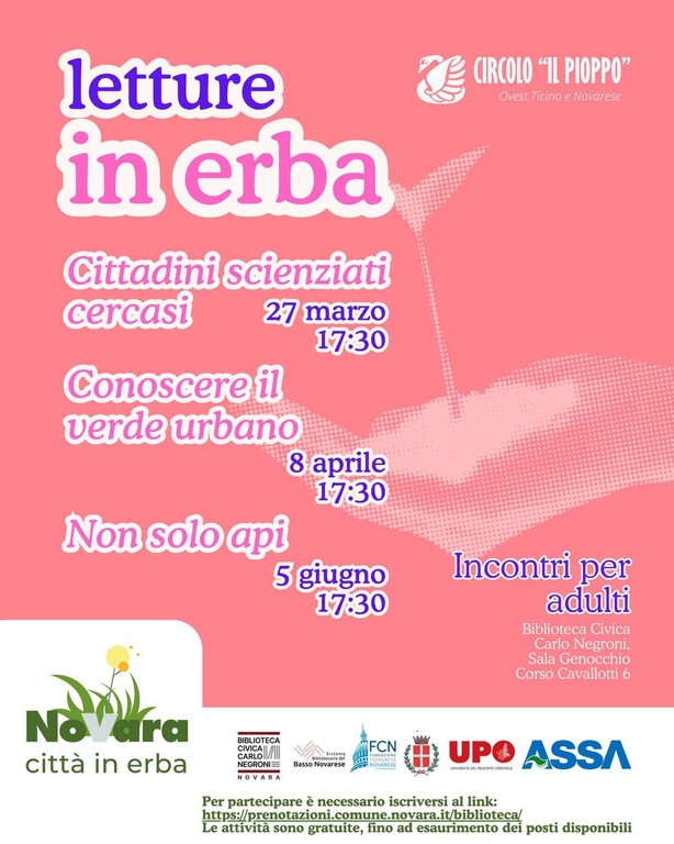 Parte a Novara il progetto “Letture in erba”, inserito nell’iniziativa “Novara Città in erba”, promossa da Legambiente in collaborazione con Comune di Novara, Assa e Università del Piemonte Orientale (UPO), con il sostegno di Fondazione Comunità Novarese. L’iniziativa propone due cicli di incontri pensati per riconnettere cittadini e bambini alla natura urbana, attraverso letture, attività educative e approfondimenti sul verde.