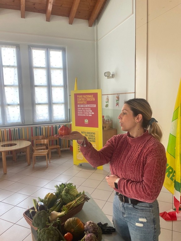 Alla presenza del Segretario Zona Ivan Strozzi, della Responsabile Sicurezza Mariangela Polito e del membro di giunta Stefano Simonotti, l’azienda agricola “Al Pum Rus” di Claudia Fonio ha intrattenuto i bimbi di età compresa tra i 3 e i 5 anni cercando di spiegare in maniera giocosa e semplice l’importanza dell’alimentazione targata Made in Italy. In particolare sono stati presentate ai piccoli studenti le proprietà di frutta e verdura, conditi con assaggi delle eccellenze del nostro territorio.