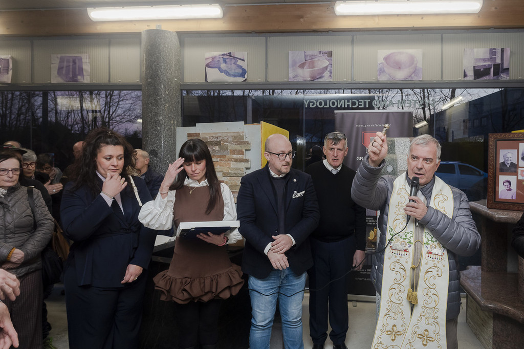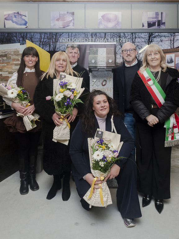 Durante il suo intervento, Cesare Ravedoni ha ripercorso le tappe di una storia familiare che si intreccia indissolubilmente con quella del territorio. “Ci troviamo qui per celebrare un traguardo straordinario.” ha esordito Cesare Ravedoni. “Dal 1925 a oggi, la storia della nostra famiglia continua a dare forma alla materia, trasformando la pietra in emozione”. L'azienda sia stata capace di evolversi attraverso le generazioni, mantenendo intatta la dedizione per un lavoro che richiede cura e rispetto per la materia prima.