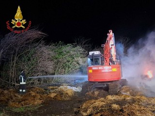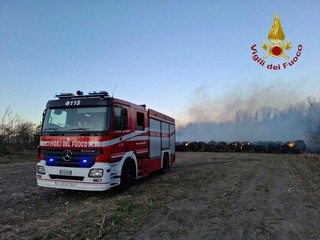 Intervento dei Vigili del Fuoco nel pomeriggio di ieri, 31 marzo, a Casaleggio, dove dalle ore 16 si è sviluppato un incendio che ha coinvolto numerose rotoballe di fieno accatastate in un terreno.