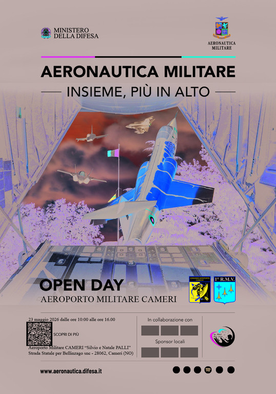 Sabato 23 maggio l’Aeroporto Militare di Cameri aprirà le porte al pubblico in occasione dell’Open Day, un appuntamento pensato per far conoscere da vicino la realtà operativa e tecnologica dell’Aeronautica Militare.