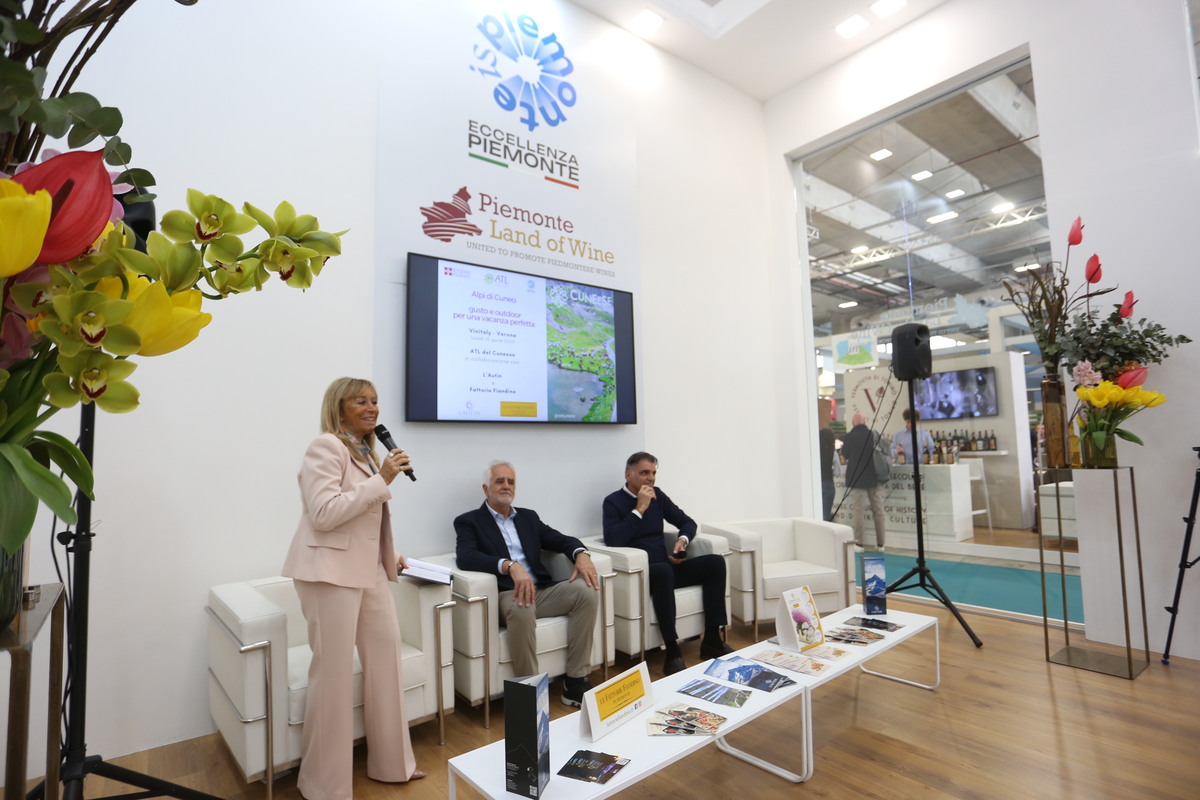 La provincia di Cuneo ha presentato la propria offerta turistica ed enogastronomica - ovviamente collegate a doppio filo - nel Padiglione Piemonte al Vinitaly di Verona. Nello spazio conferenze al centro dei 700 mq della Regione nel Salone internazionale del Vino, l'Azienda Turistica Locale del Cuneese con la sua presidente Gabriella Giordano ha portato le sue montagne: dal Monviso alle Alpi Marittime, dove vivere esperienze outdoor uniche tra trekking, bike, arrampicata e trail running. E, a fianco dell'avventura, i sapori: i vini de l'Autin, prodotti all'ombra del Monviso e i formaggi delle Fattorie Fiandino, realizzati con metodo Kinara con caglio vegetale.