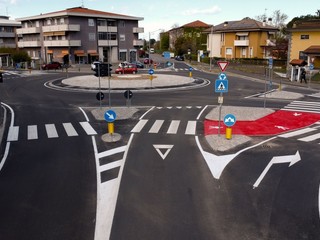 Dal punto di vista tecnico, la rotatoria è stata progettata per garantire una migliore gestione dei flussi di traffico e maggiore sicurezza anche per pedoni e ciclisti, grazie a percorsi protetti e a una riorganizzazione complessiva dell’area. L’intervento comprende inoltre nuova illuminazione, segnaletica aggiornata, sistemi per il drenaggio delle acque piovane e opere di sistemazione a verde.