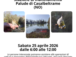 Un’occasione speciale per gli appassionati di natura e birdwatching: sabato 25 aprile 2026 sarà aperta al pubblico la stazione di inanellamento presso la palude di Casalbeltrame.