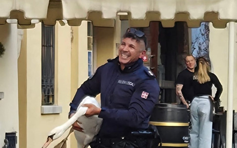 Il salvataggio del cigno diventa virale: protagonista un agente della polizia locale VIDEO
