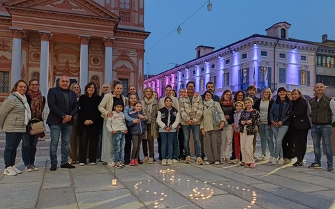 Palazzo Tornielli si illumina di rosso e rosa per pace e prevenzione